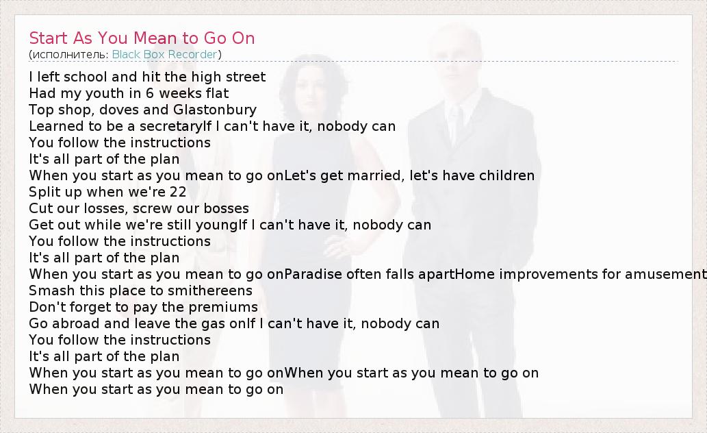 А как ты думаешь, о чем песня "Start As You Mean to Go On" ?