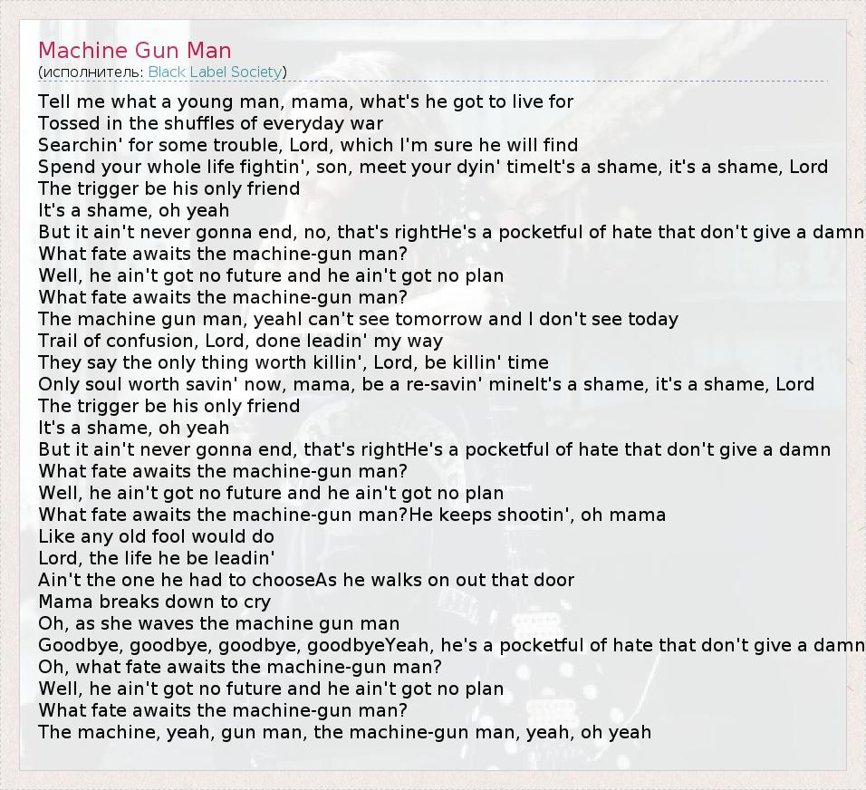 А как ты думаешь, о чем песня "Machine Gun Man" ?