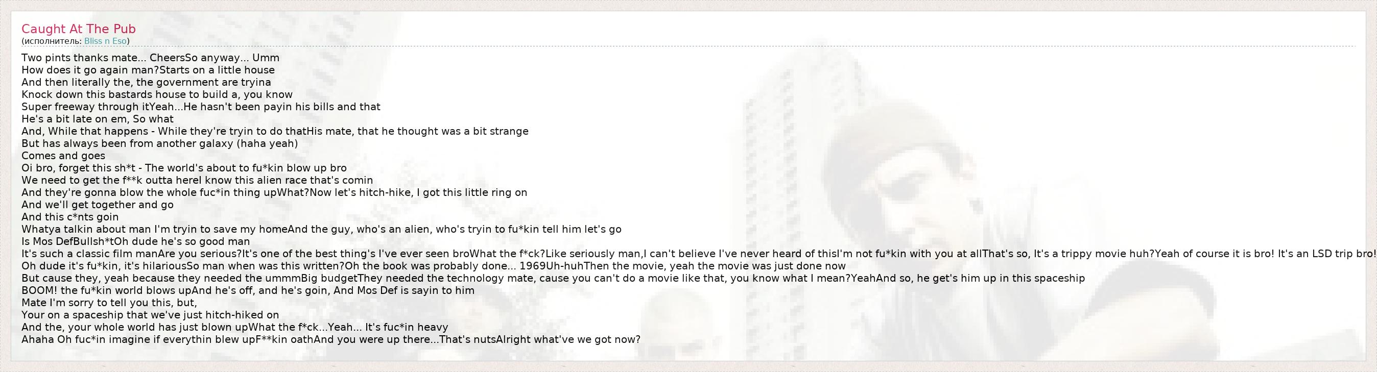 А как ты думаешь, о чем песня "Caught At The Pub" ?