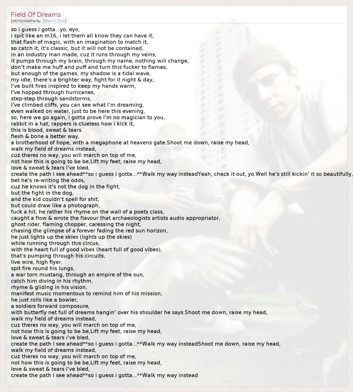А как ты думаешь, о чем песня "Field Of Dreams" ?