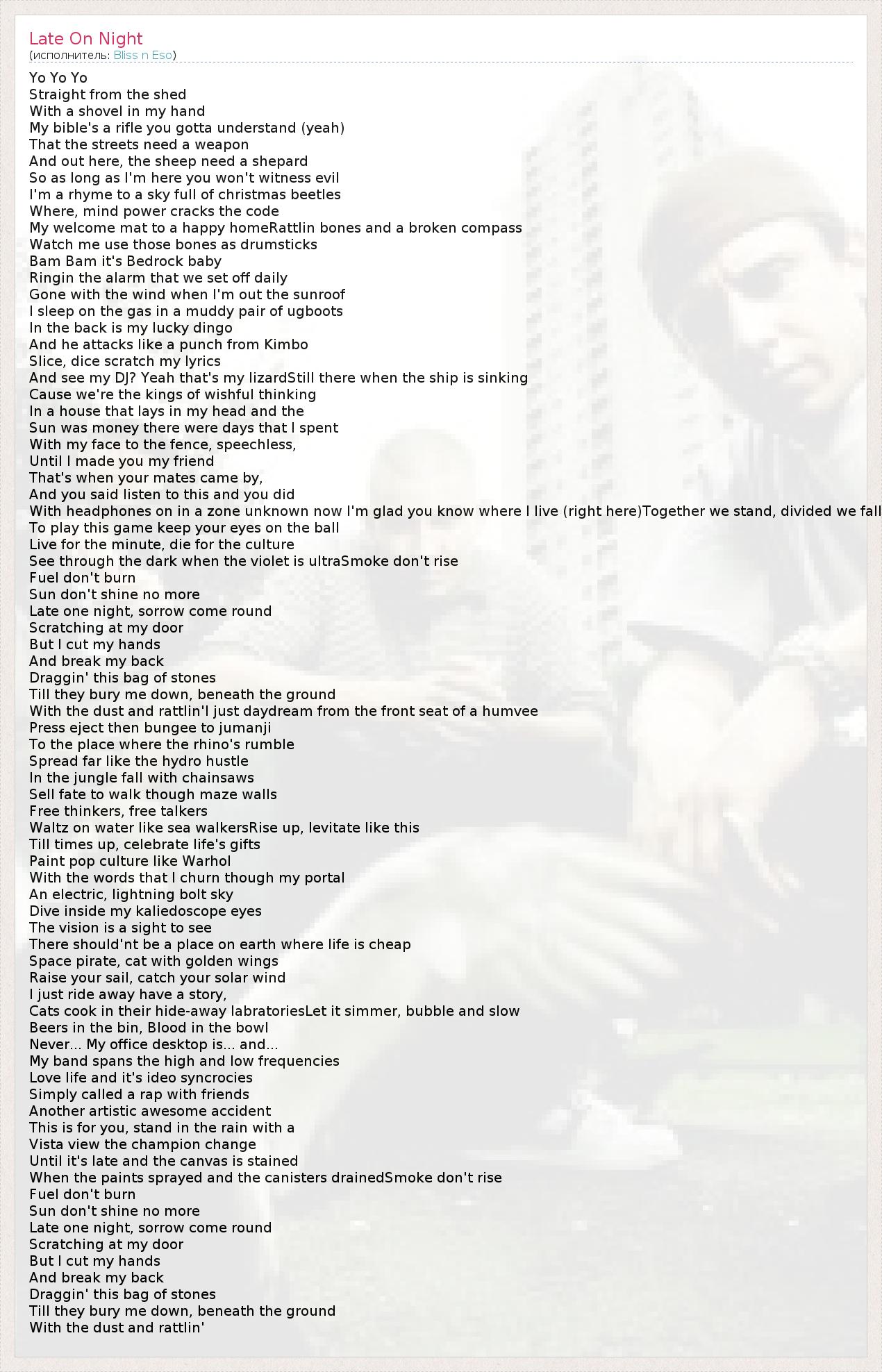 А как ты думаешь, о чем песня "Late On Night" ?