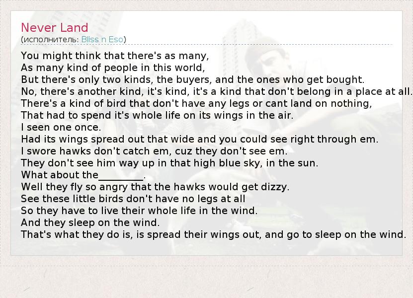 А как ты думаешь, о чем песня "Never Land" ?