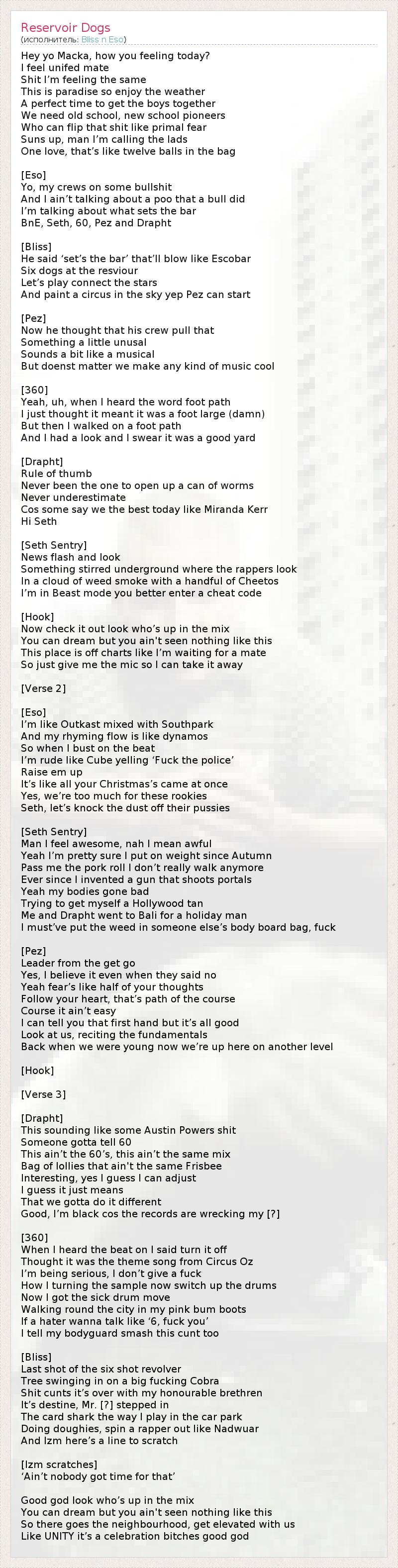 А как ты думаешь, о чем песня "Reservoir Dogs" ?