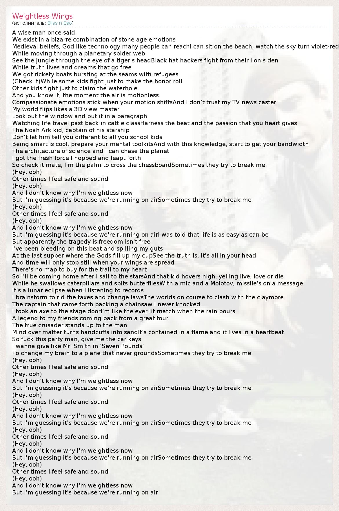 А как ты думаешь, о чем песня "Weightless Wings" ?