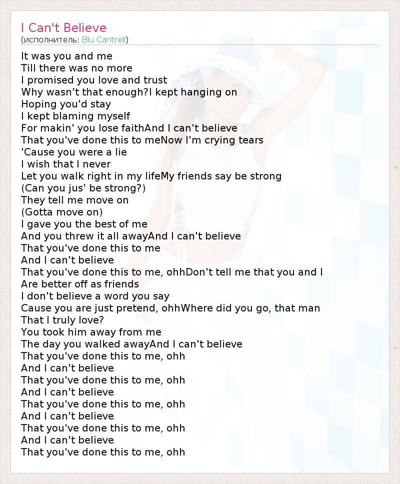 А как ты думаешь, о чем песня "I Can't Believe" ?