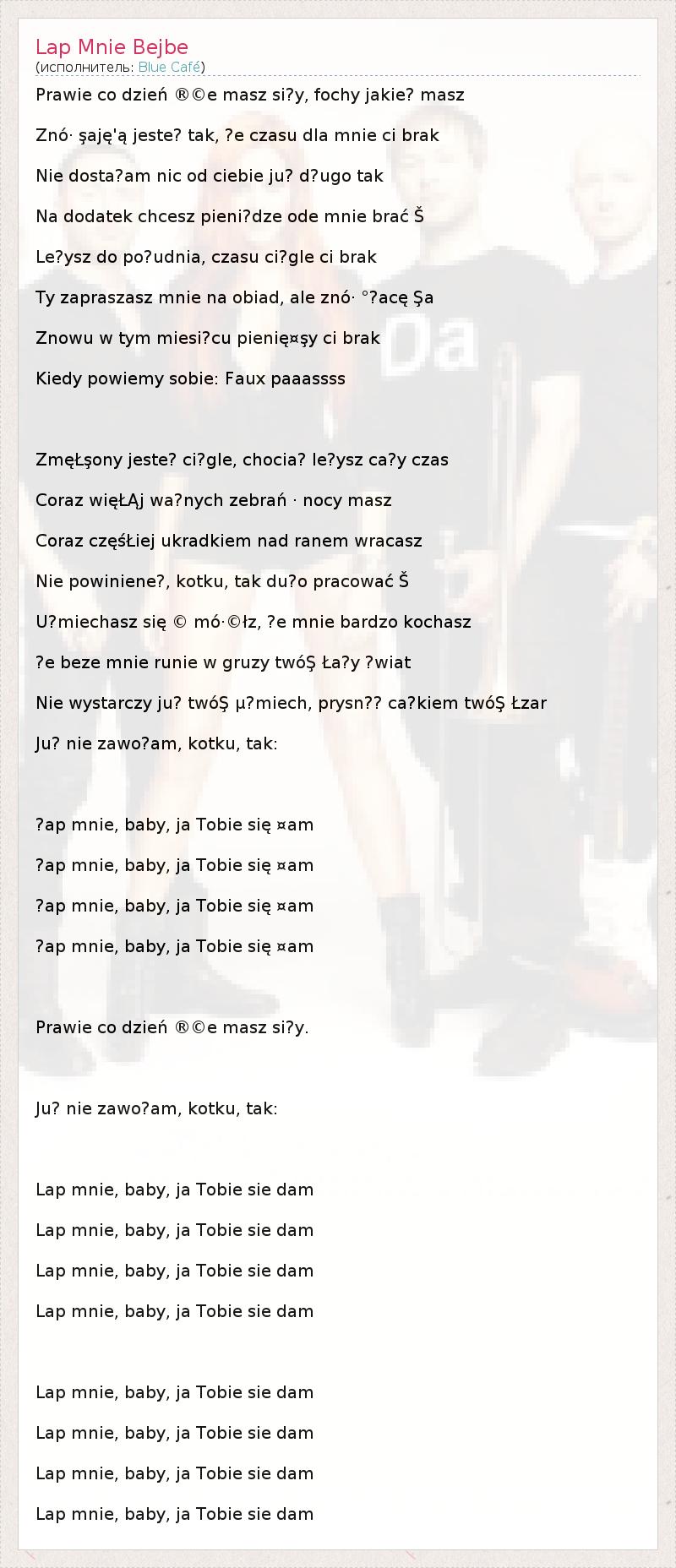 А как ты думаешь, о чем песня "Lap Mnie Bejbe" ?