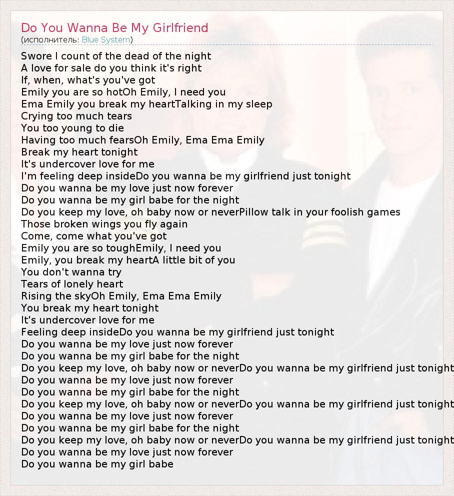 А как ты думаешь, о чем песня "Do You Wanna Be My Girlfriend" ?
