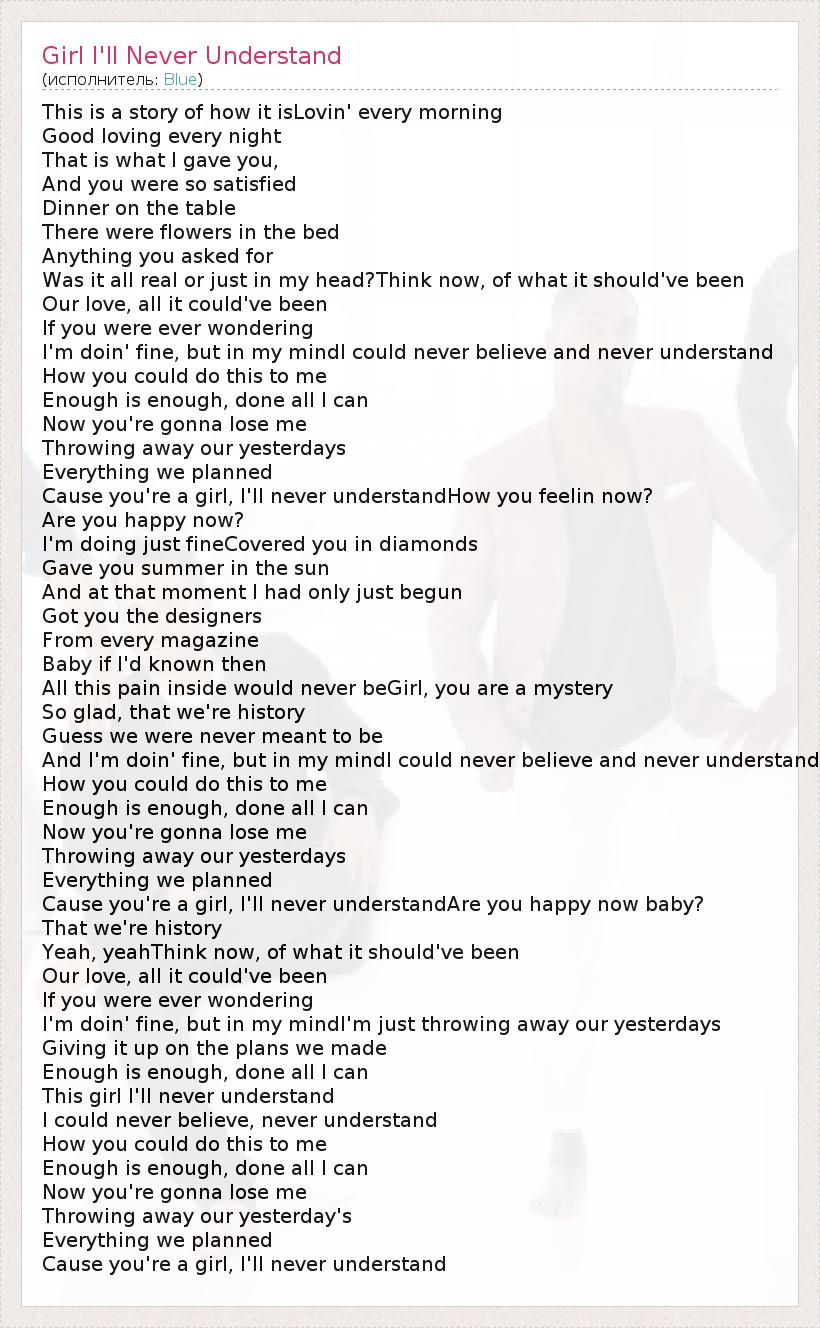 А как ты думаешь, о чем песня "Girl I'll Never Understand" ?