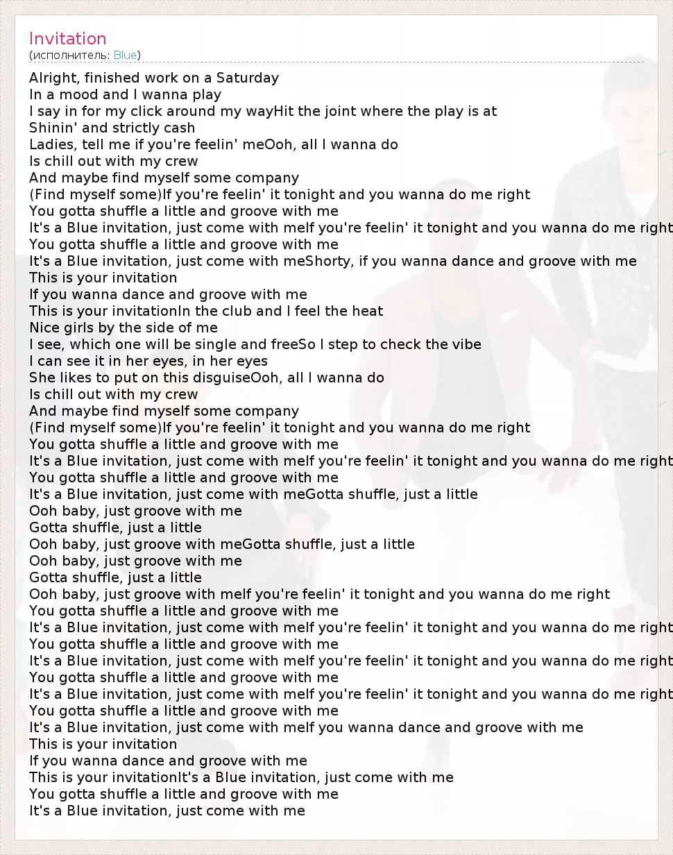 It's a Blue invitation, just come with meGotta shuffle, just a little