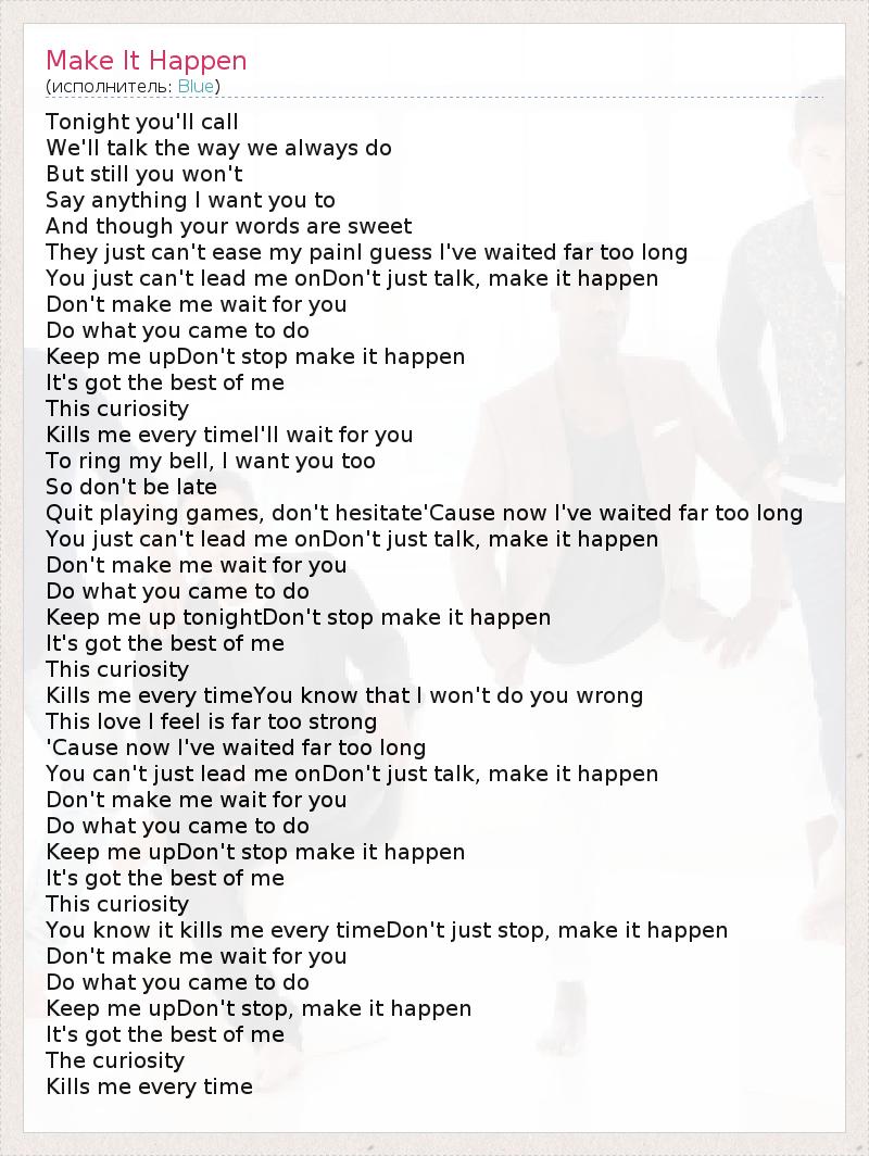 А как ты думаешь, о чем песня "Make It Happen" ?