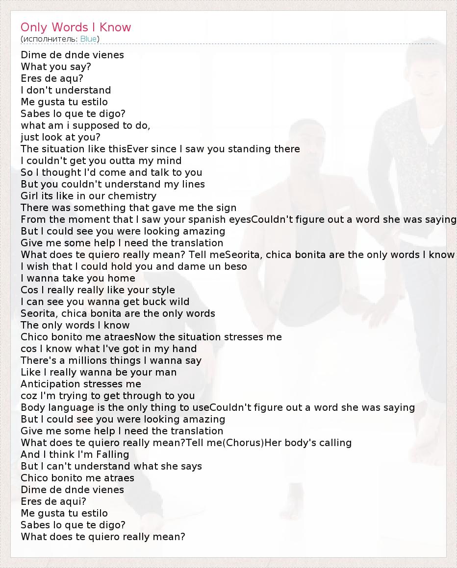 Only Words I Know
