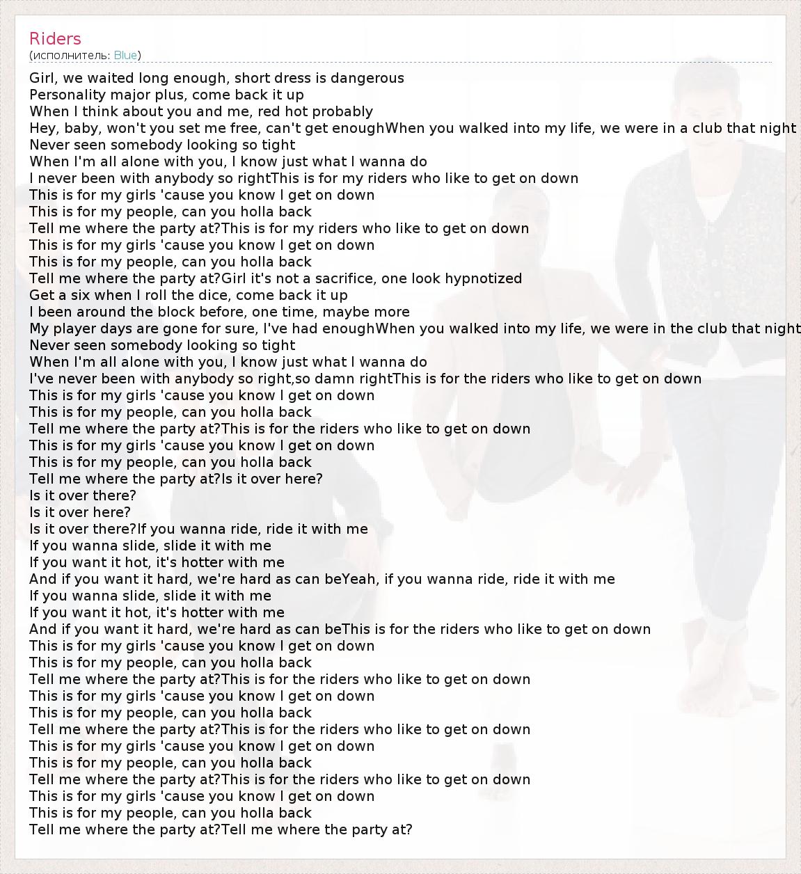 I've never been with anybody so right,so damn rightThis is for the riders who like to get on down