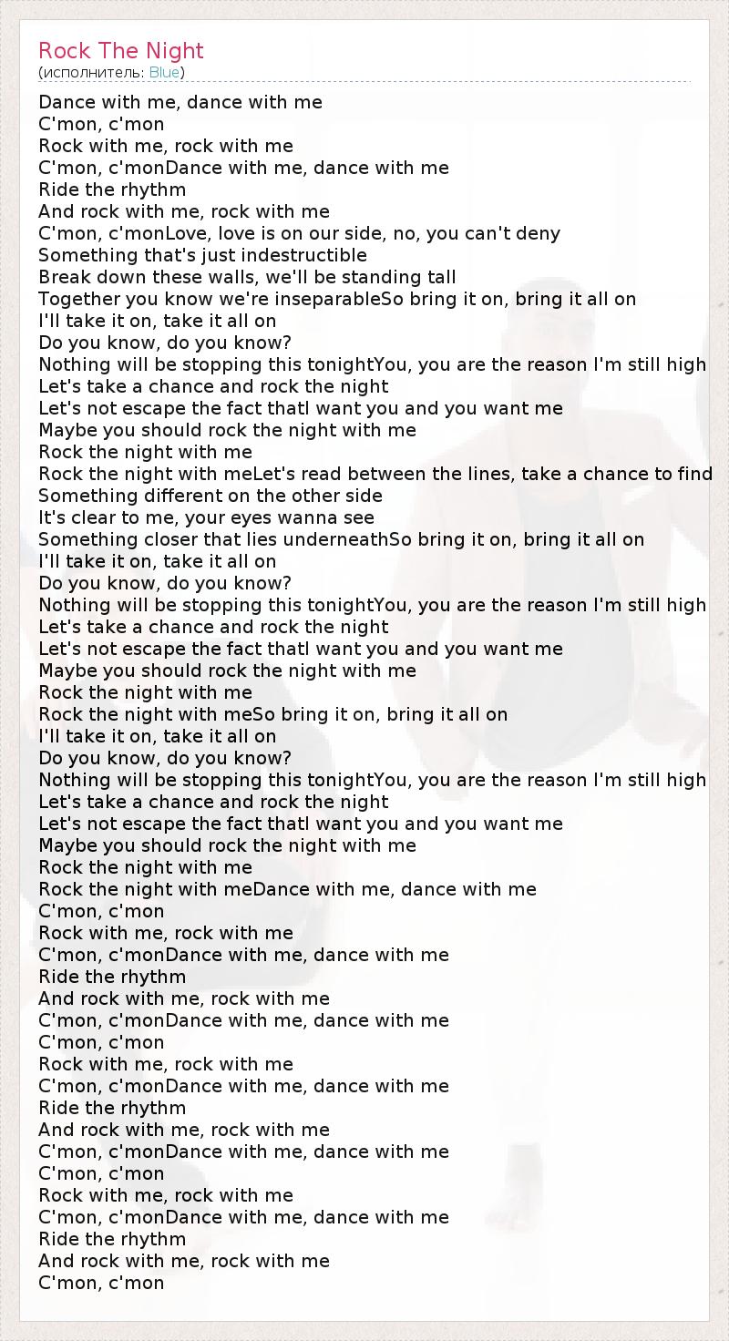 А как ты думаешь, о чем песня "Rock The Night" ?