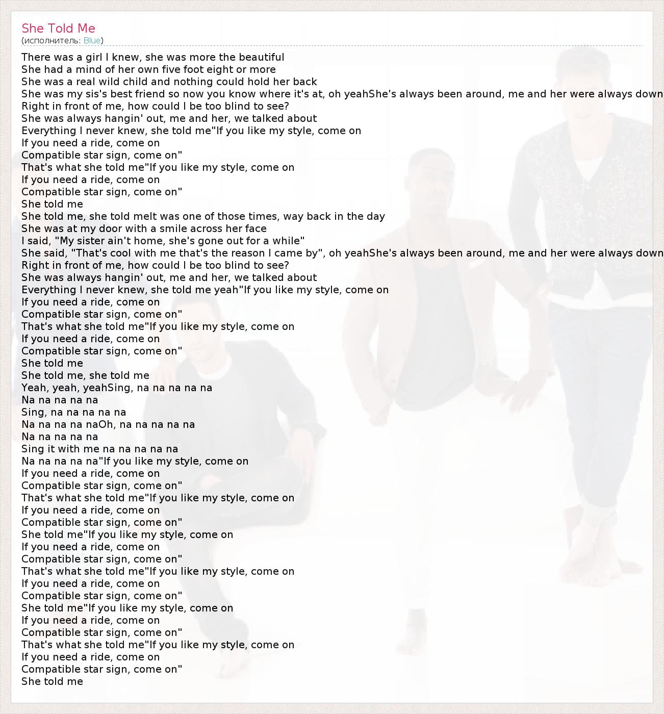 Everything I never knew, she told me"If you like my style, come on
