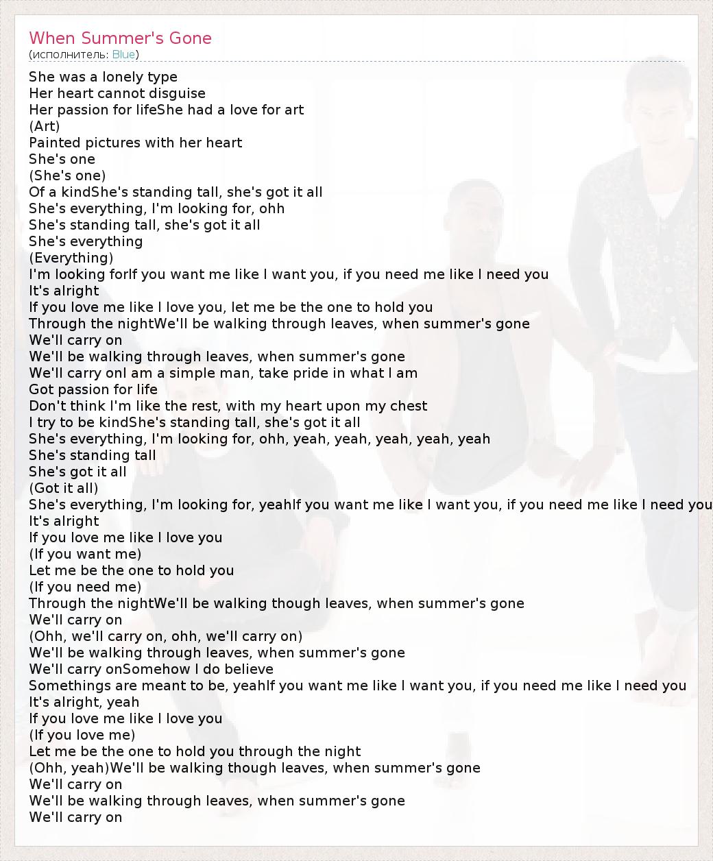 ГлавнаяИсполнителиBlueWhen Summer's Gone
