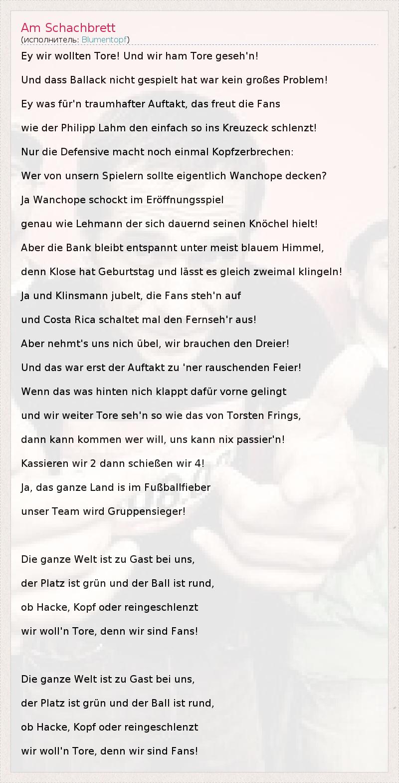 А как ты думаешь, о чем песня "Am Schachbrett" ?