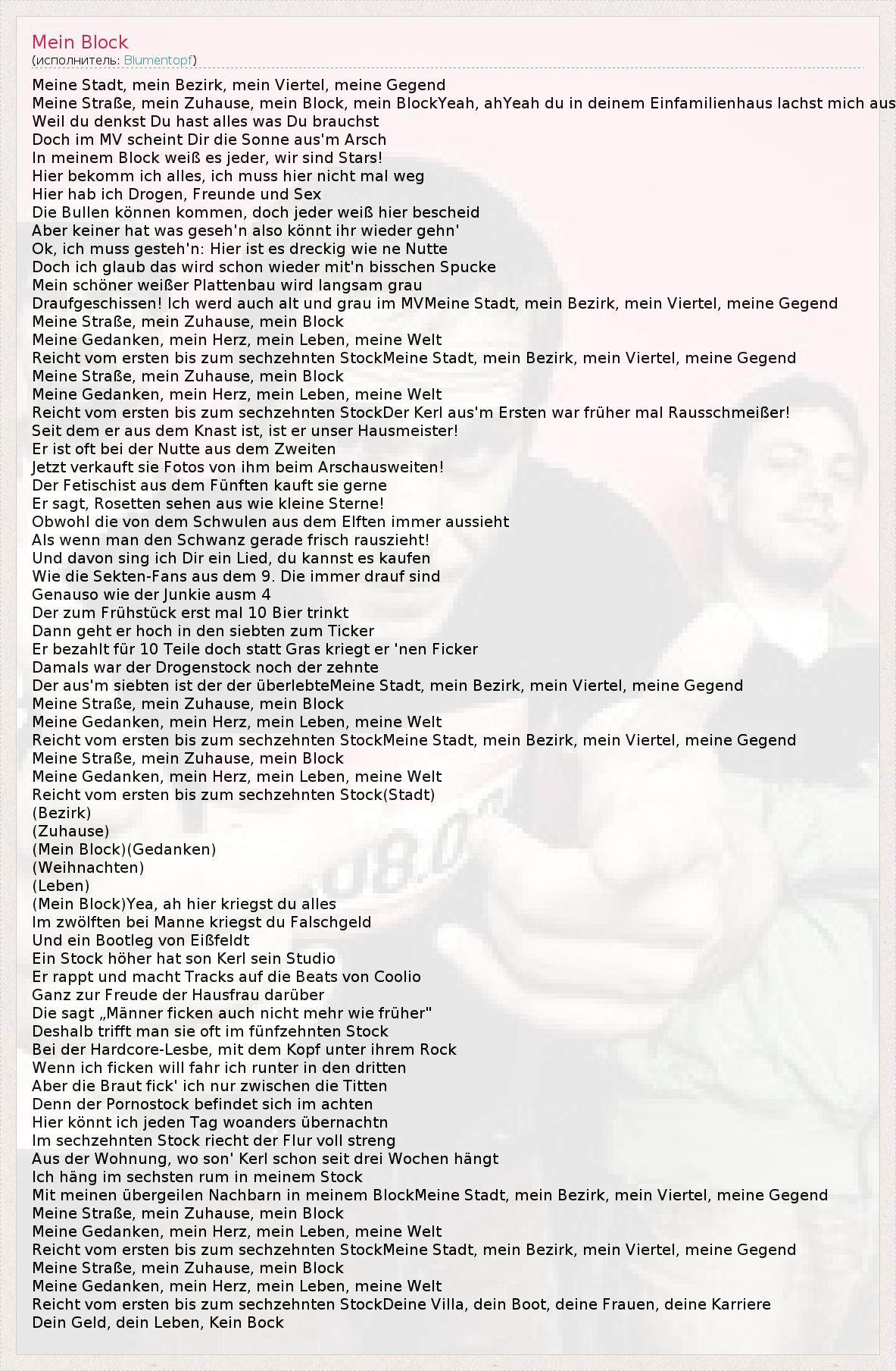 А как ты думаешь, о чем песня "Mein Block" ?