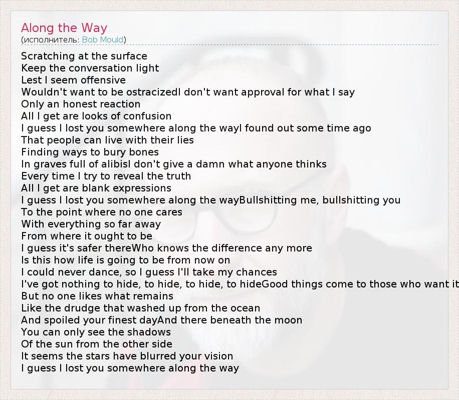 I guess I lost you somewhere along the wayBullshitting me, bullshitting you