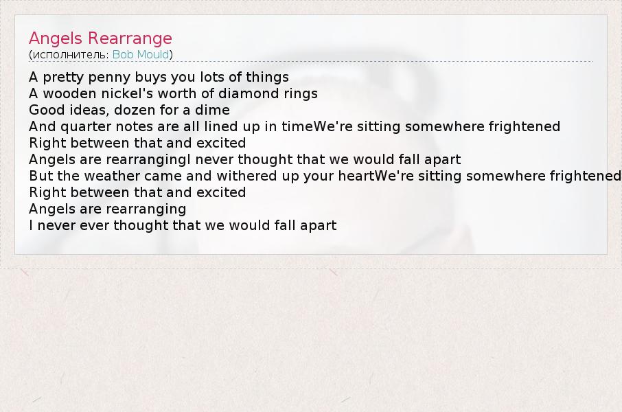 А как ты думаешь, о чем песня "Angels Rearrange" ?