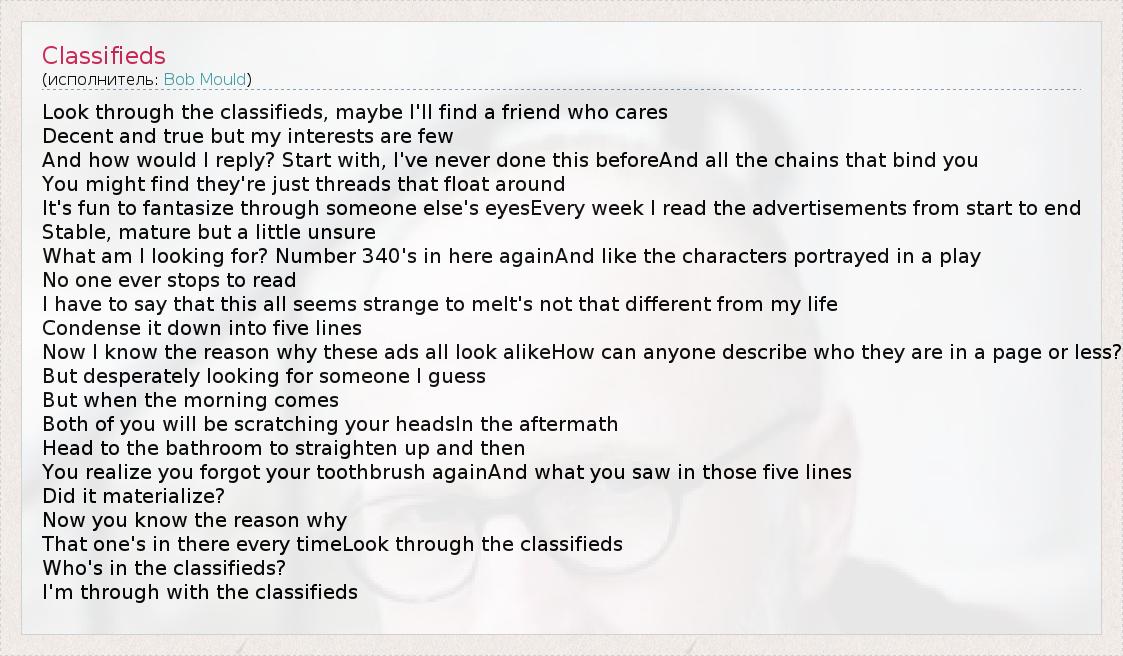 А как ты думаешь, о чем песня "Classifieds" ?