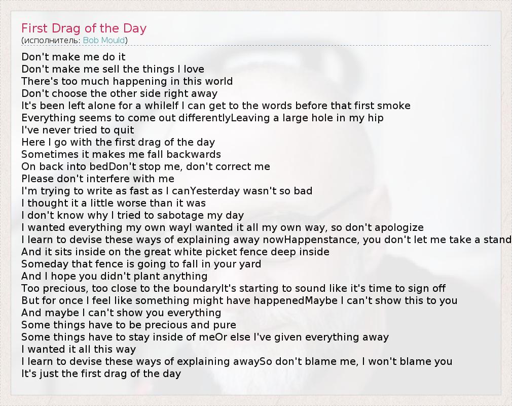 А как ты думаешь, о чем песня "First Drag of the Day" ?