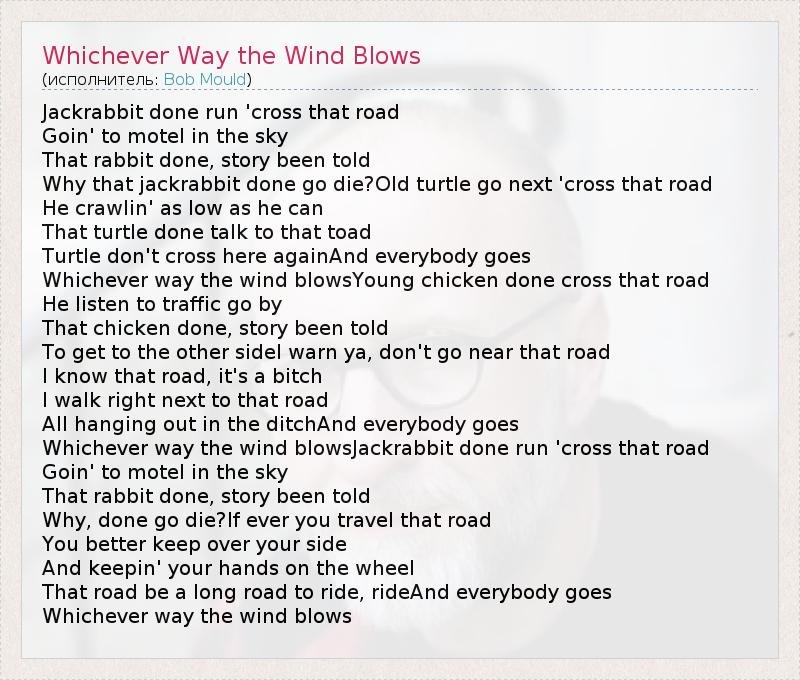 А как ты думаешь, о чем песня "Whichever Way the Wind Blows" ?