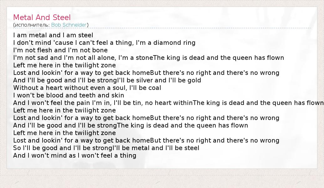 А как ты думаешь, о чем песня "Metal And Steel" ?