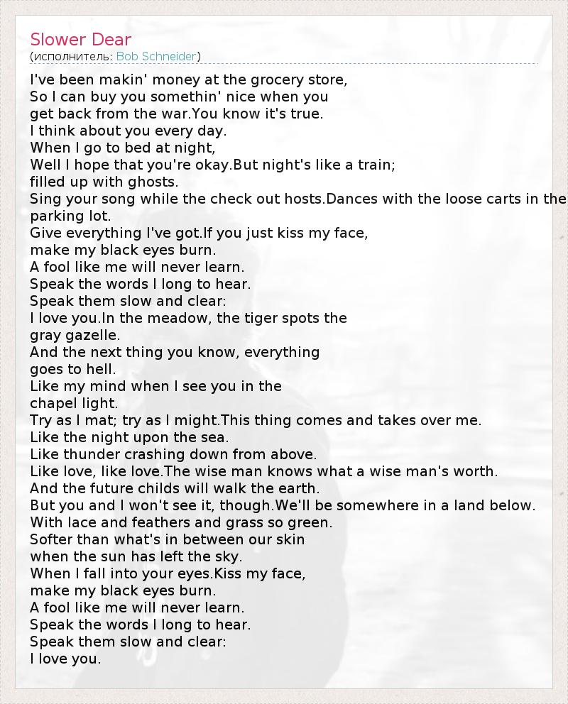 А как ты думаешь, о чем песня "Slower Dear" ?