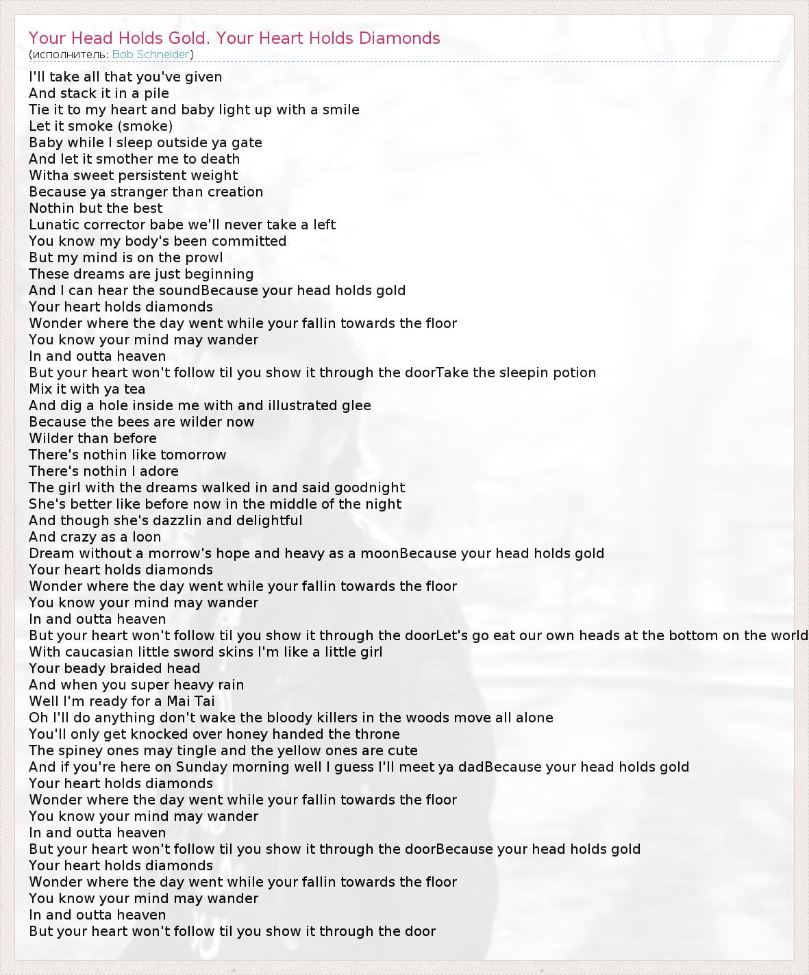 А как ты думаешь, о чем песня "Your Head Holds Gold. Your Heart Holds Diamonds" ?