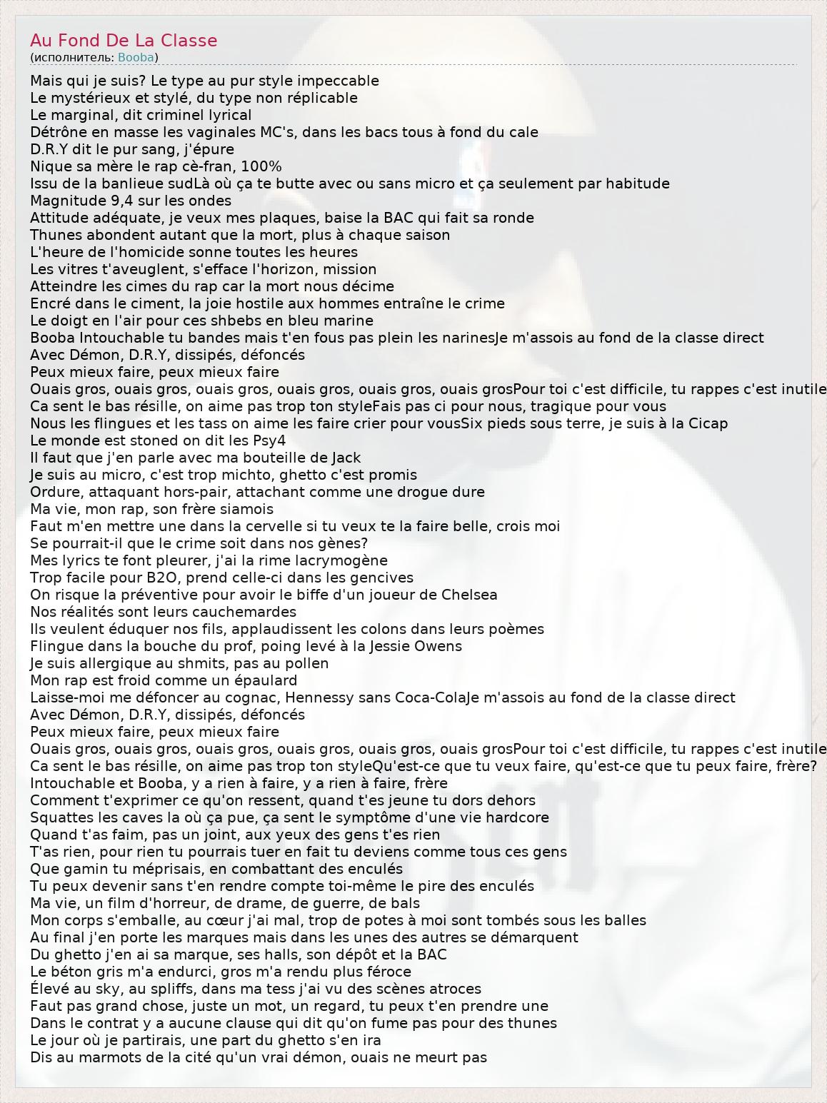 ГлавнаяИсполнителиBoobaAu Fond De La Classe