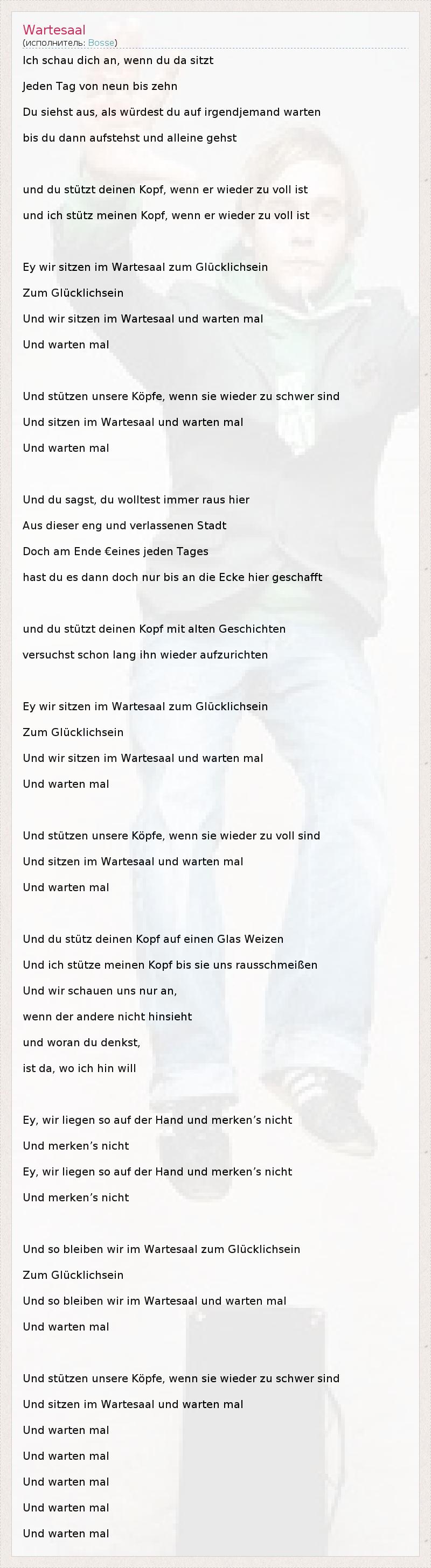 А как ты думаешь, о чем песня "Wartesaal" ?