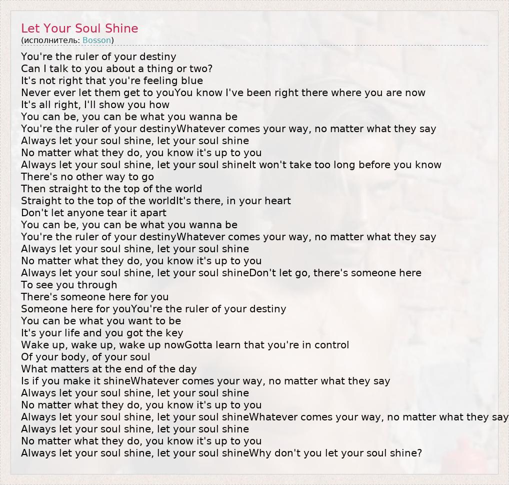 А как ты думаешь, о чем песня "Let Your Soul Shine" ?