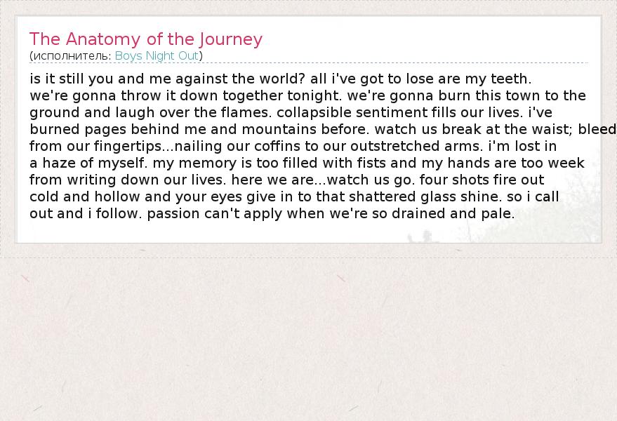 А как ты думаешь, о чем песня "The Anatomy of the Journey" ?