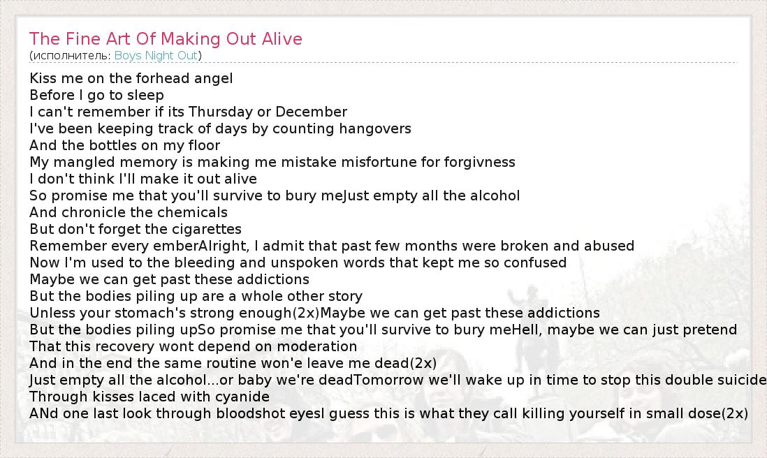 А как ты думаешь, о чем песня "The Fine Art Of Making Out Alive" ?