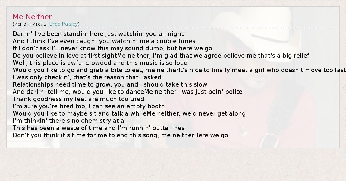 And darlin' tell me, would you like to danceMe neither I was just bein' polite