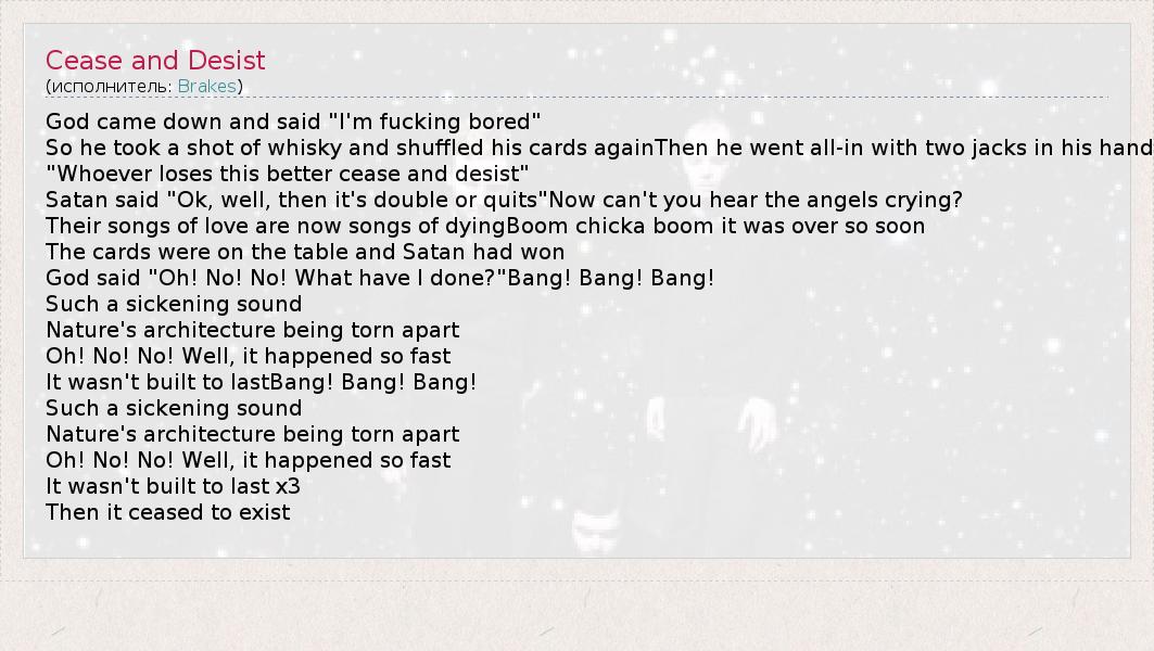 А как ты думаешь, о чем песня "Cease and Desist" ?
