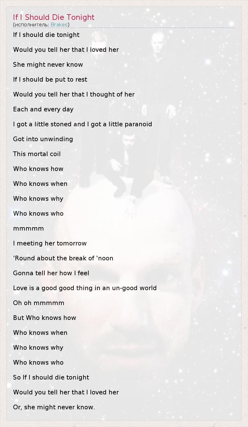 А как ты думаешь, о чем песня "If I Should Die Tonight" ?