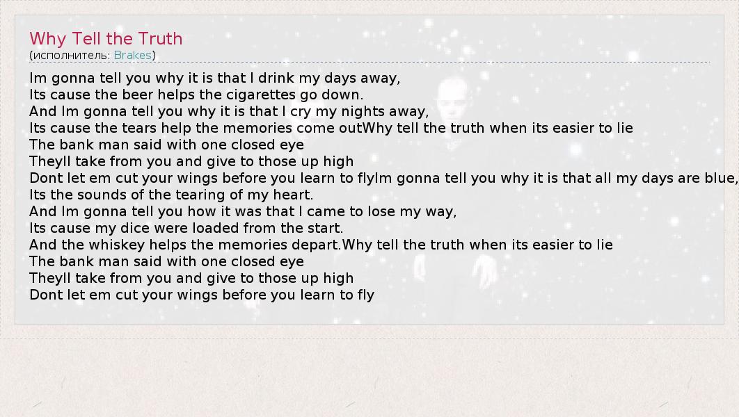 А как ты думаешь, о чем песня "Why Tell the Truth" ?