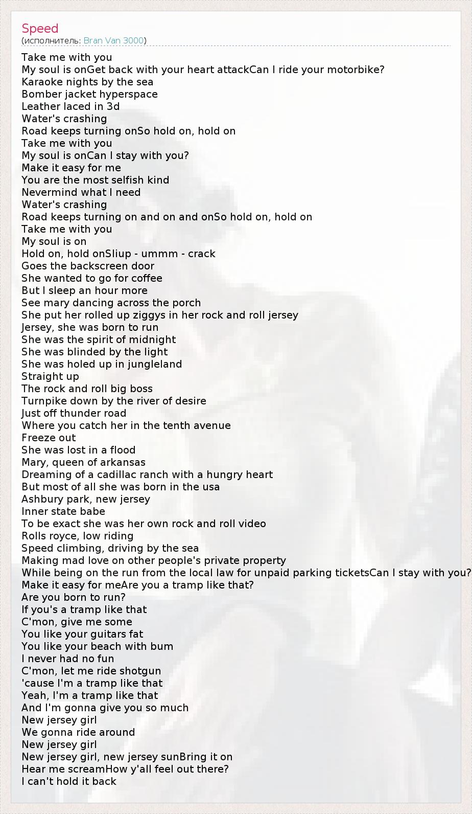 А как ты думаешь, о чем песня "Speed" ?
