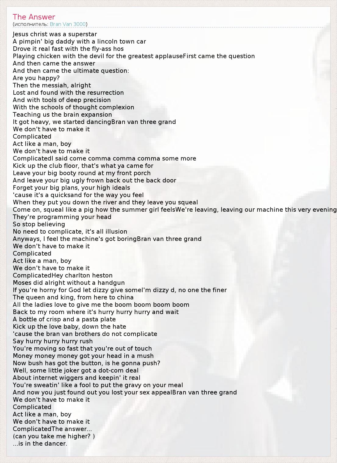 А как ты думаешь, о чем песня "The Answer" ?