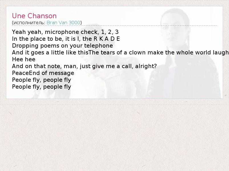 А как ты думаешь, о чем песня "Une Chanson" ?
