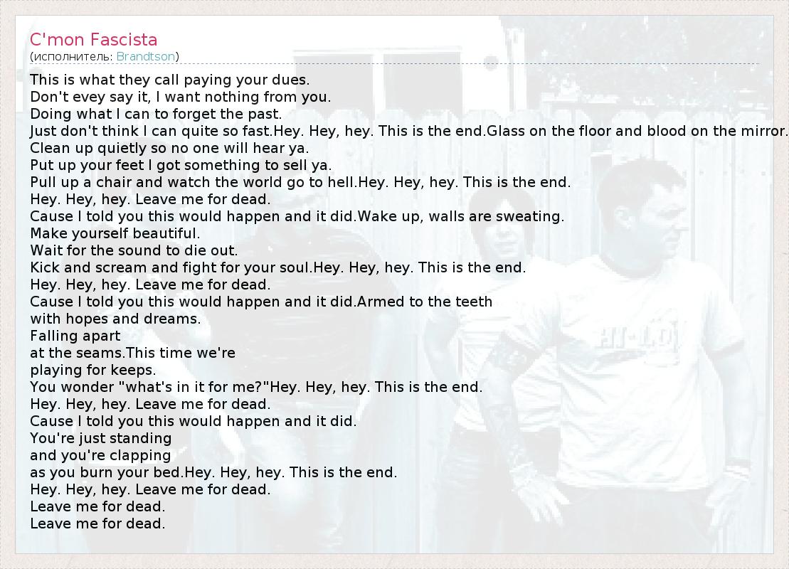 А как ты думаешь, о чем песня "C'mon Fascista" ?