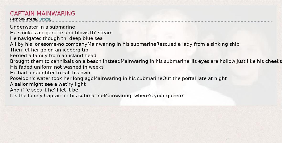 А как ты думаешь, о чем песня "CAPTAIN MAINWARING" ?