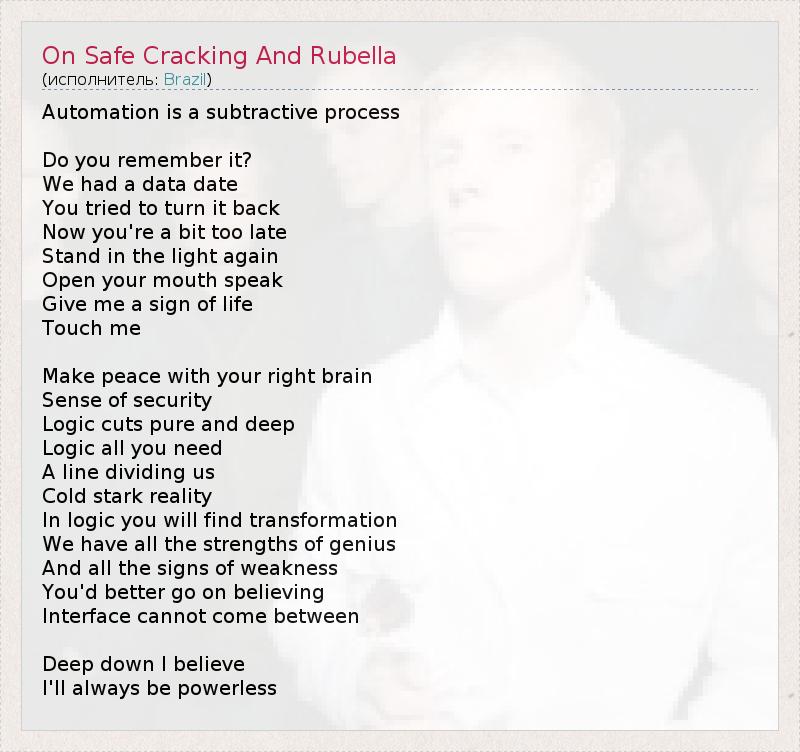 А как ты думаешь, о чем песня "On Safe Cracking And Rubella" ?