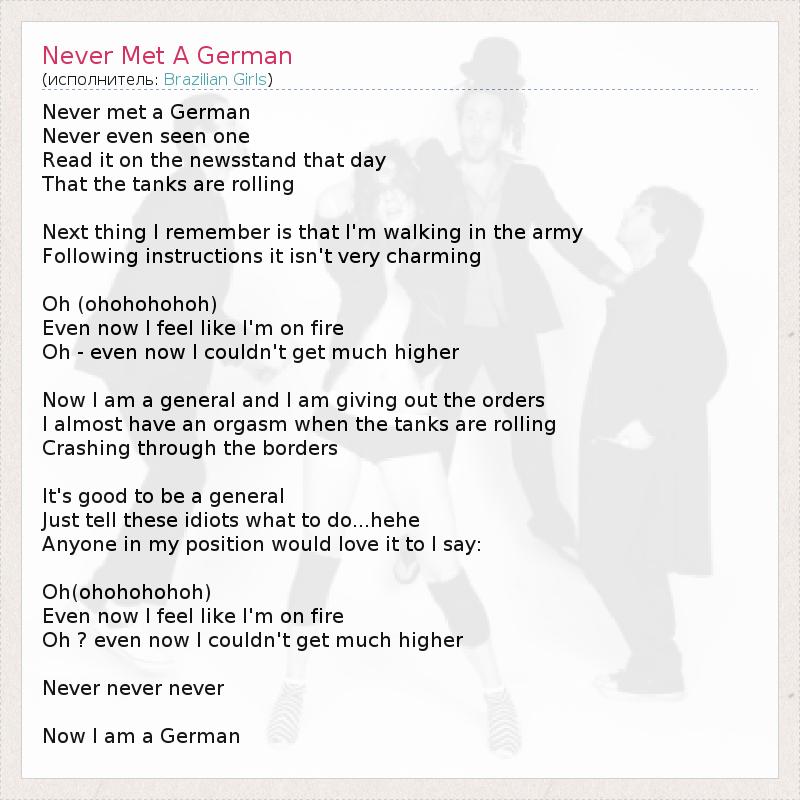 А как ты думаешь, о чем песня "Never Met A German" ?