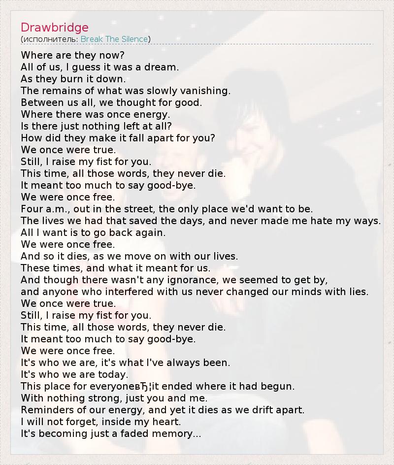 А как ты думаешь, о чем песня "Drawbridge" ?
