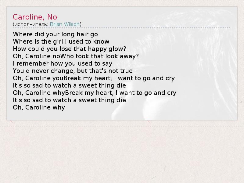 А как ты думаешь, о чем песня "Caroline, No" ?
