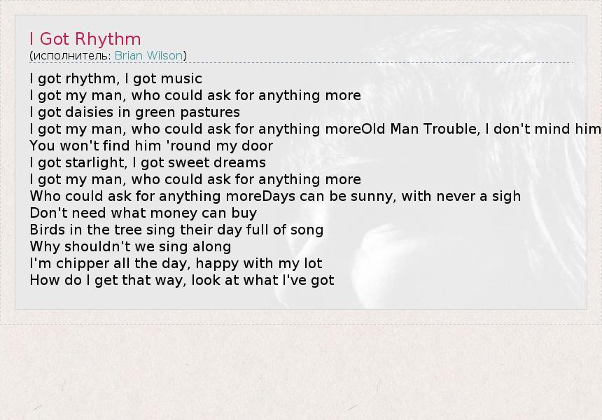 А как ты думаешь, о чем песня "I Got Rhythm" ?