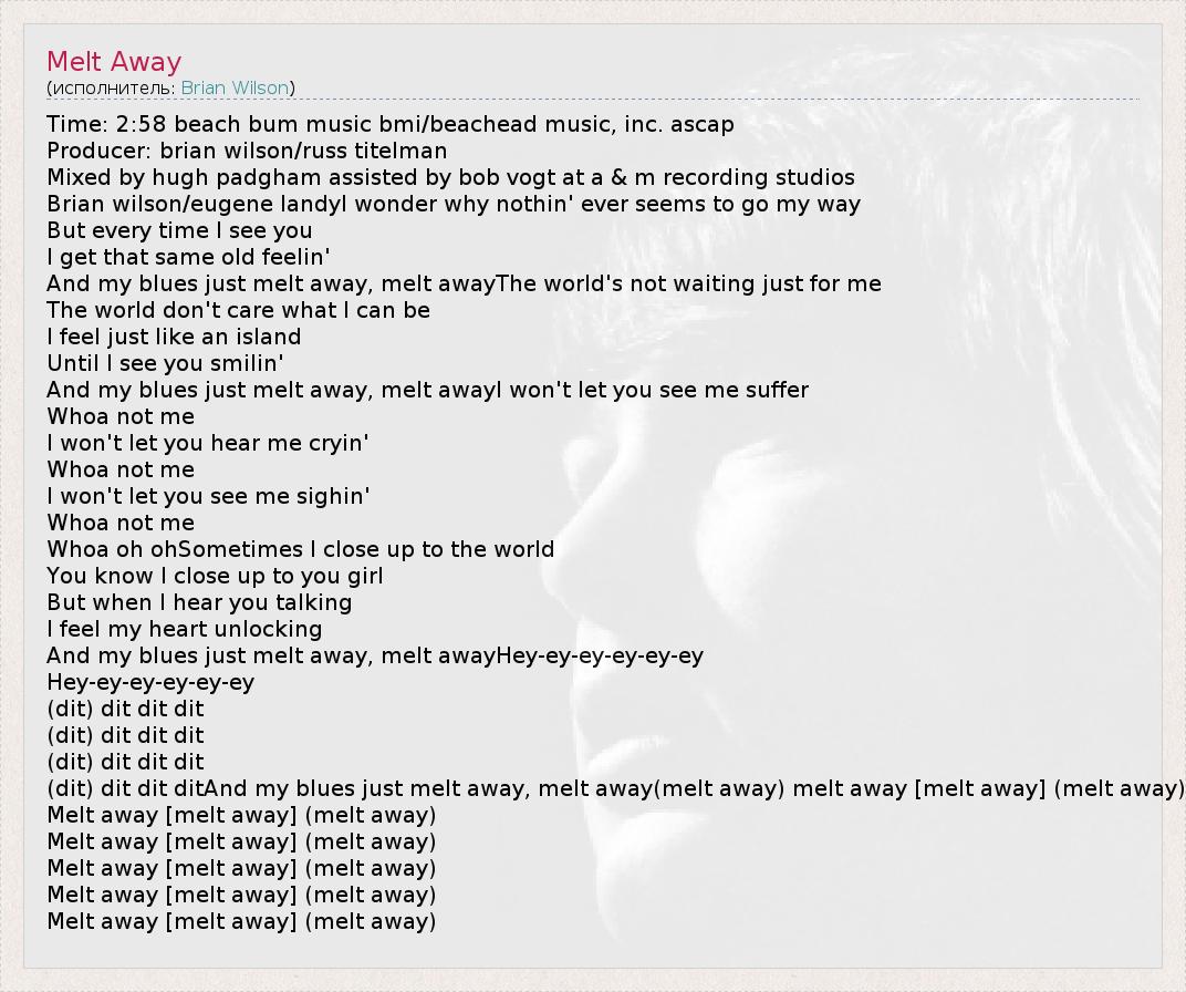 (dit) dit dit ditAnd my blues just melt away, melt away(melt away) melt away [melt away] (melt away)