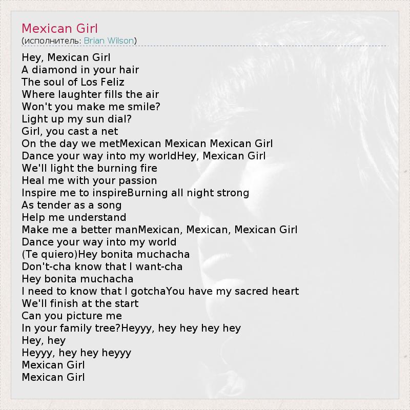 А как ты думаешь, о чем песня "Mexican Girl" ?